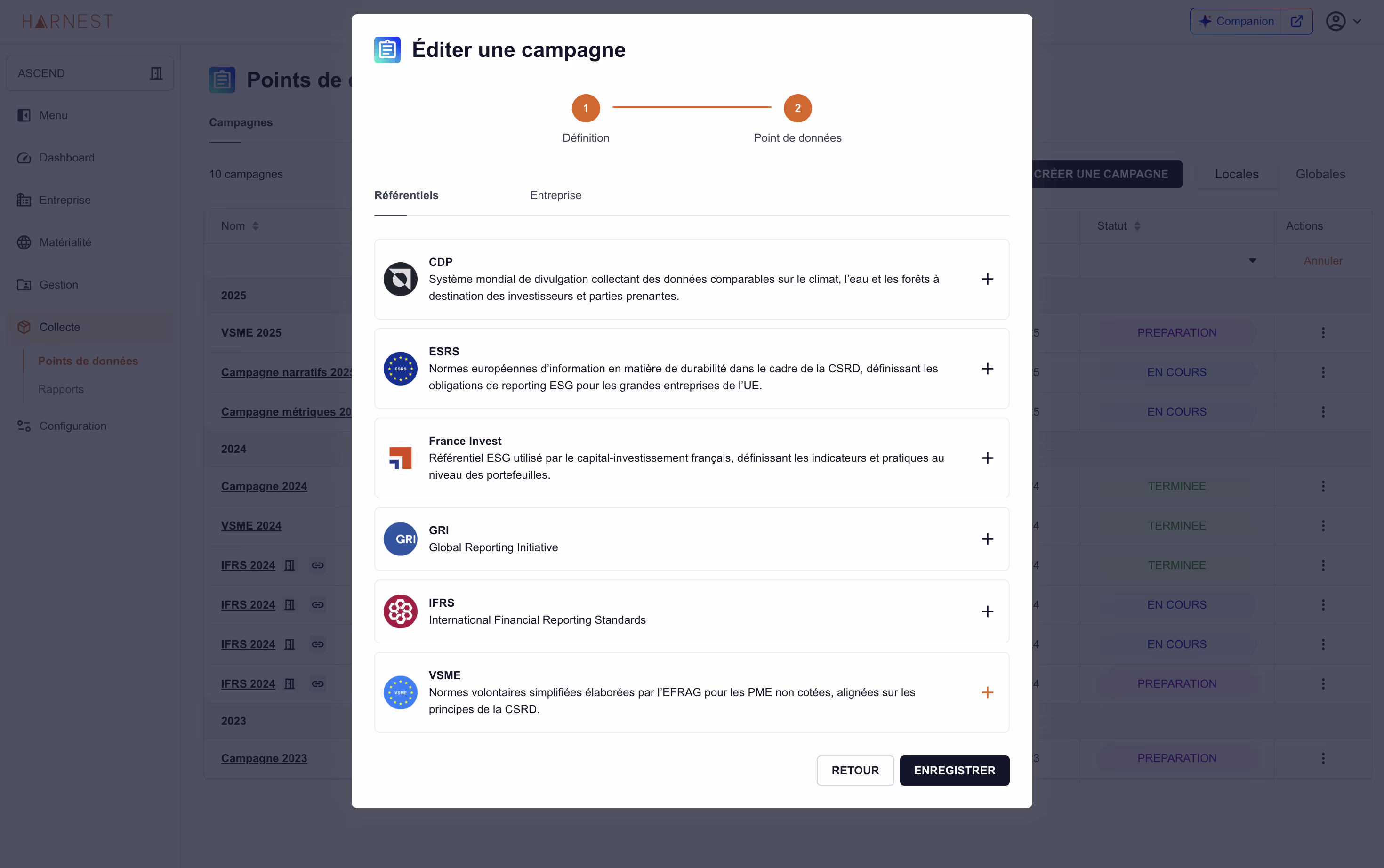 Harnest centralizes your extra-financial data, harmonizes your indicators, links your action plans to your reports and allows you to respond simultaneously to several ESG standards.